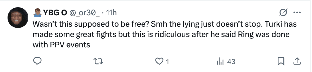 Elsewhere, Jesse Rodriguez puts his Undisputed Super Flyweight title on the line against Fernando Martinez. Rodriguez is seen as one of the sport’s best P4P fighters. And yet, the controversy stems from a change in price policy. Previously the Saudis had reportedly said all major Riyadh Season and The Ring events, starting with this card, would be included for all existing DAZN subscribers at no additional PPV cost.