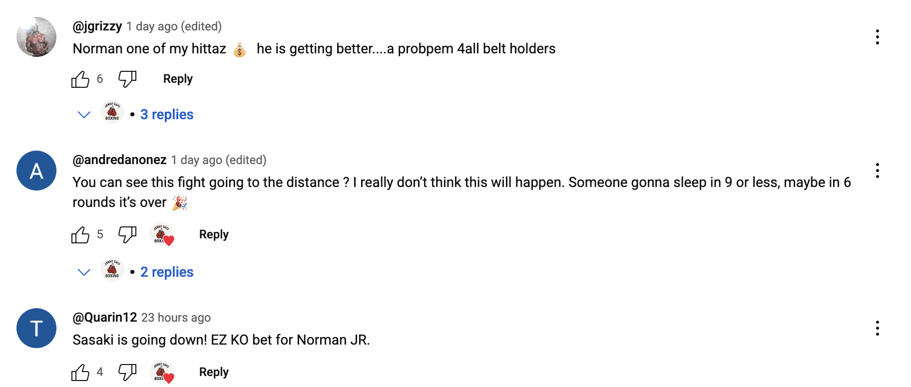 He was then elevated to the full champion once Terence Crawford moved up. Norman Jr. stopped Derrieck Cuevas in his last fight, his second stoppage in a row. Meanwhile, Sasaki has not lost at welterweight. He has a 19–1-0 record, with 17 knockouts. He has six knockouts from his last seven fights. His biggest wins have come against Ryota Toyoshima, Joe Noynay, Qamil Balla and Shoki Sakai in his last bout. Here is how fans saw the fight playing out.