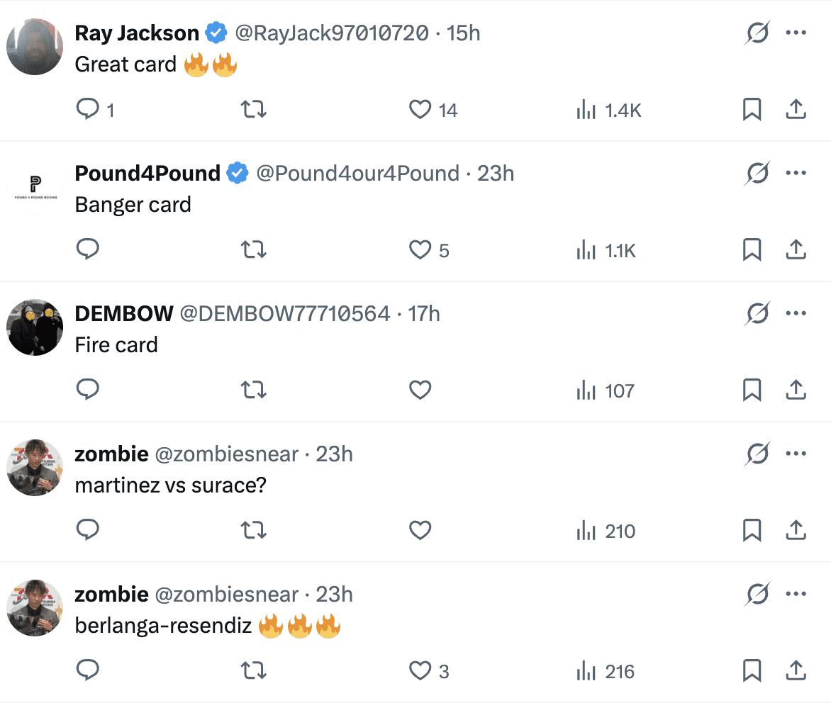 - Lester Martínez vs. TBA: The dangerous Guatemalan prospect is slated for a feature bout against an opponent yet to be named.