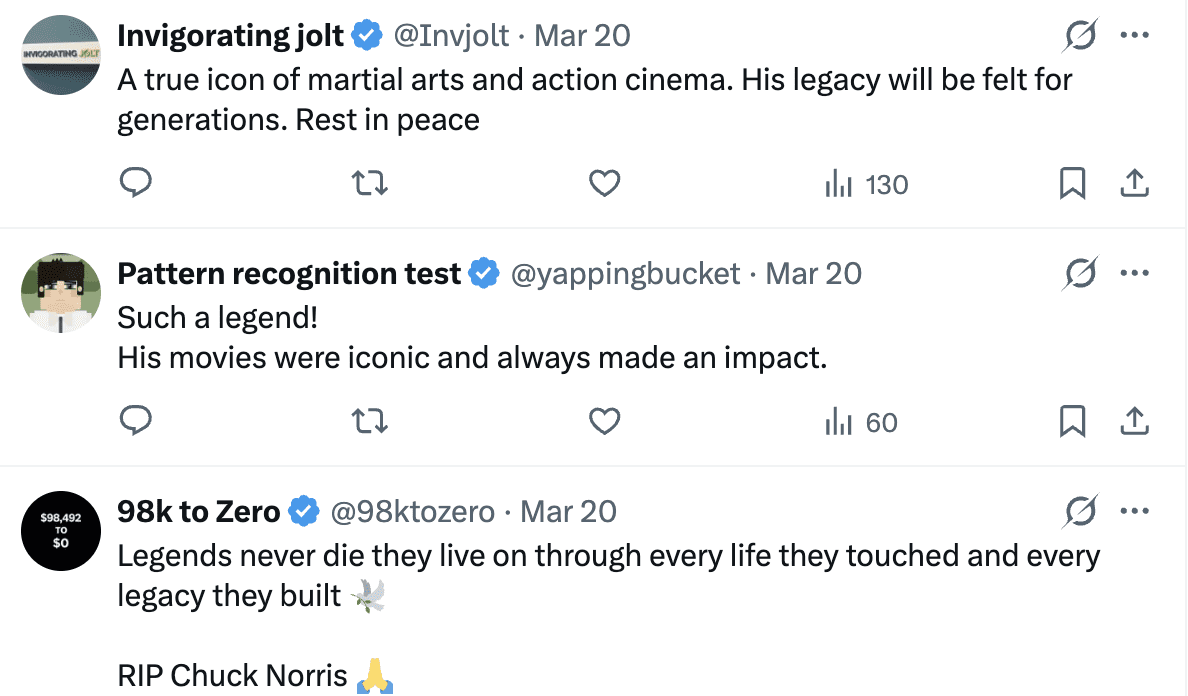"It is with heavy hearts that our family shares the sudden passing of our beloved Chuck Norris yesterday morning. While we would like to keep the circumstances private, please know that he was surrounded by his family and was at peace.