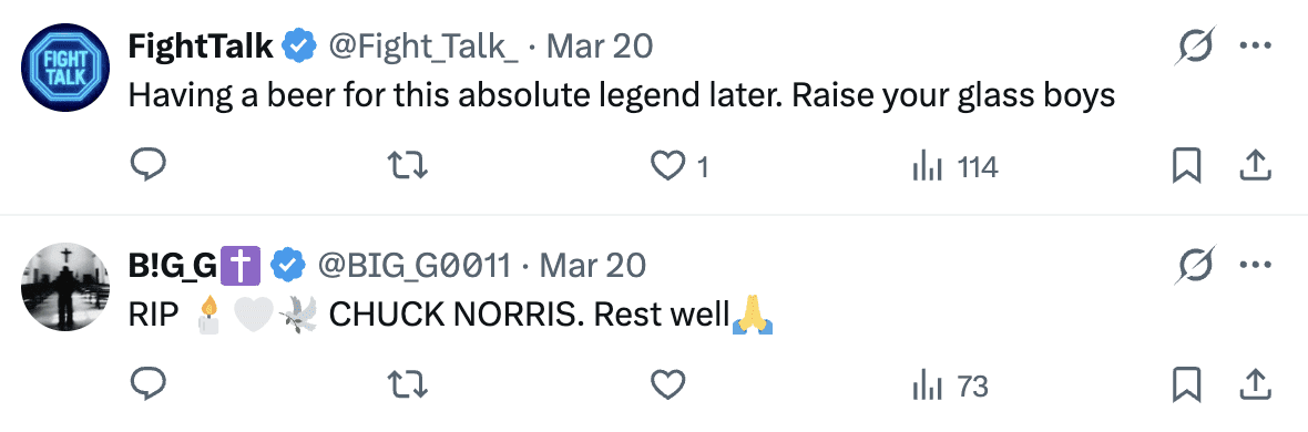 Norris passed away shortly after being admitted to hospital for a medical emergency. The news is particularly jarring to fans as it comes just 10 days after Norris shared a video for his 86th birthday. In the clip, he was seen sparring with a trainer and famously quipped, "I don’t age. I level up."