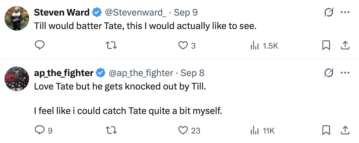 The biggest question is the physical condition of both fighters. Andrew Tate has not competed in a professional combat sports bout since 2020, and a long layoff can affect a fighter’s timing, reflexes, and cardio. Till, on the other hand, has been active in Misfits Boxing and has shown that he is a legitimate threat. Here is how the fans saw the fight playing out.