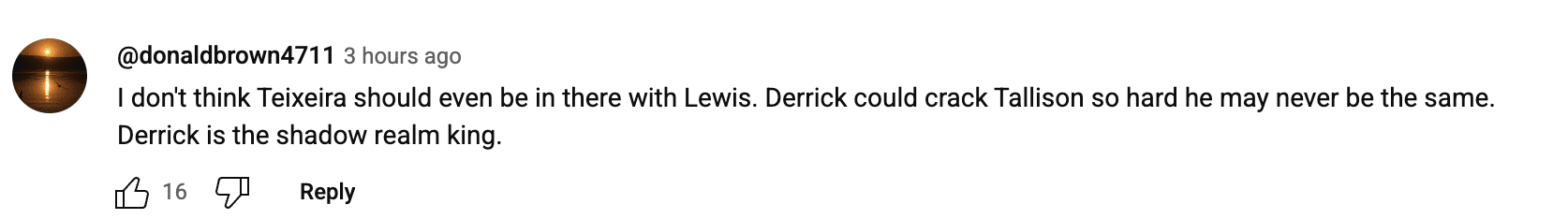 Fans Predict Derrick Lewis Vs. Tallison Teixeira – ‘He's Not Winning'