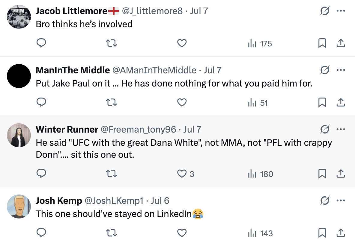 Davis’ comments have drawn backlash on social media, with many questioning the stature of the PFL. Dana White has long criticized the PFL, refusing to co-promote with them, stating that the UFC is big enough on its own. He also hit out at their ticket sales amid suggestions that the PFL could be struggling financially. While the PFL signed Ngannou in the hope it would propel the promotion further, The Predator’s camp have spoken about a UFC return. That only goes on to harm the PFL’s brand, as fans could not see the PFL staging a White House card.