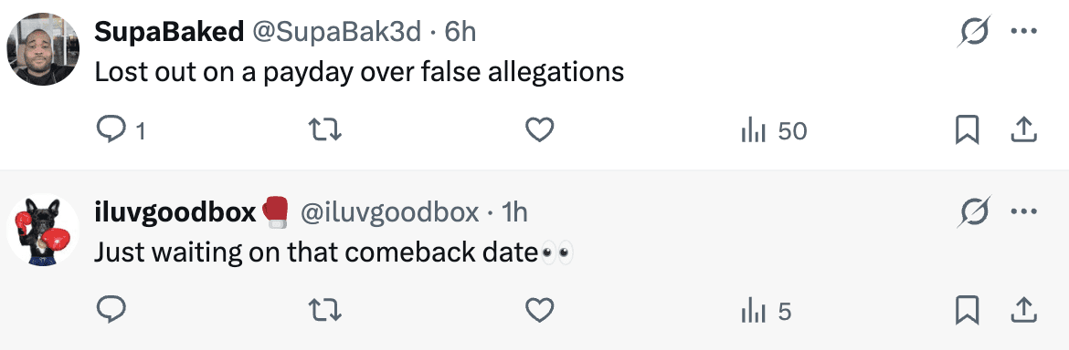 While Davis has not been convicted, the fallout from these allegations has already reshaped the boxing landscape for 2026. Davis was originally scheduled to face Jake Paul in a massive crossover event in November 2025. Paul and Most Valuable Promotions (MVP) canceled the bout, eventually replacing Davis with Anthony Joshua. Rossel is also pursuing a civil lawsuit against Davis for battery and intentional infliction of emotional distress.
