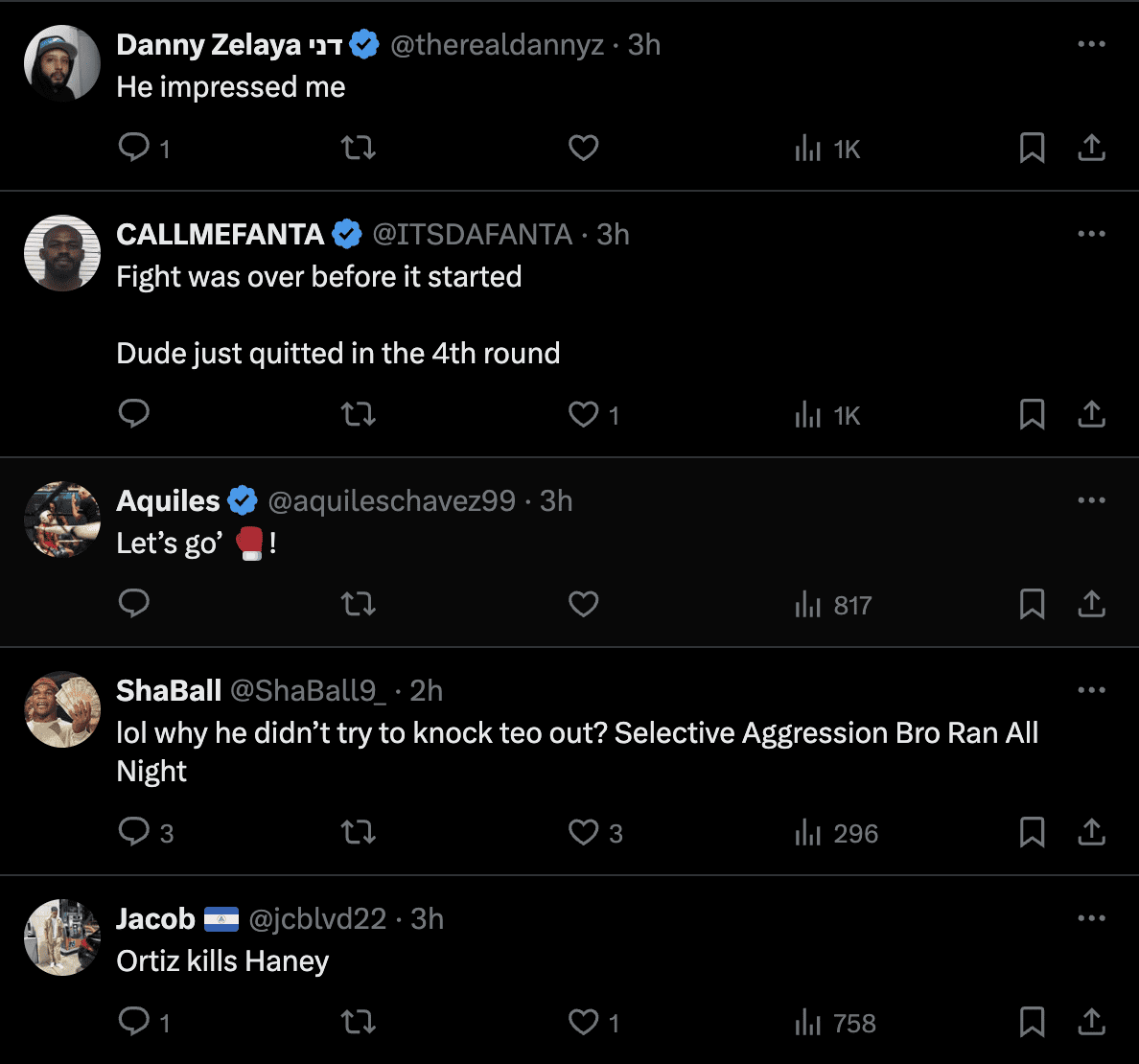 "I stuck to the gameplan. I listened to my corner, my team. [And] I thought I was winning. [And] I think I won the fight. What can I say? He couldn’t hit me, I was making him miss all night. 117-111 is just ridiculous," Ortiz stated