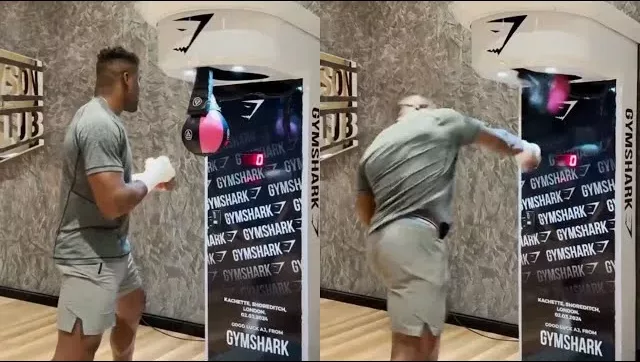 Francis Ngannou has warned Anthony Joshua as he showed off his power on a boxing punch machine.