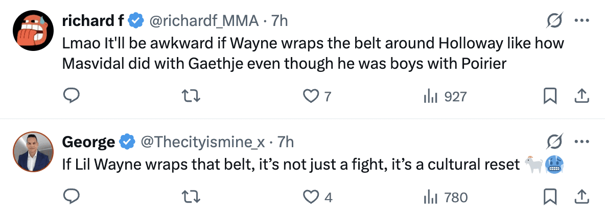Fans have reacted to the news that rapper Lil Wayne will present the winner of Max Holloway vs. Dustin Poirier with the BMF Belt.