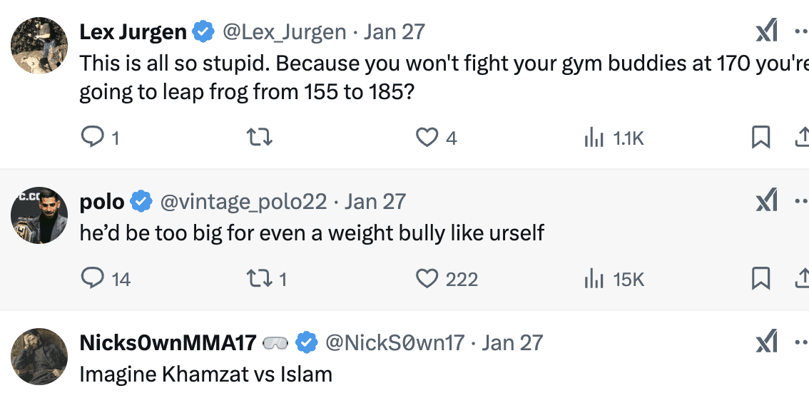 While that may be the case, it would make more sense for him to take a tune up fight in the weight division to acclimatize himself first before facing the other big names. There is also the issue of the other contenders in the division. Khamzat Chimaev should arguably get a title shot before Islam does. But it is something that he is keeping his eye on.