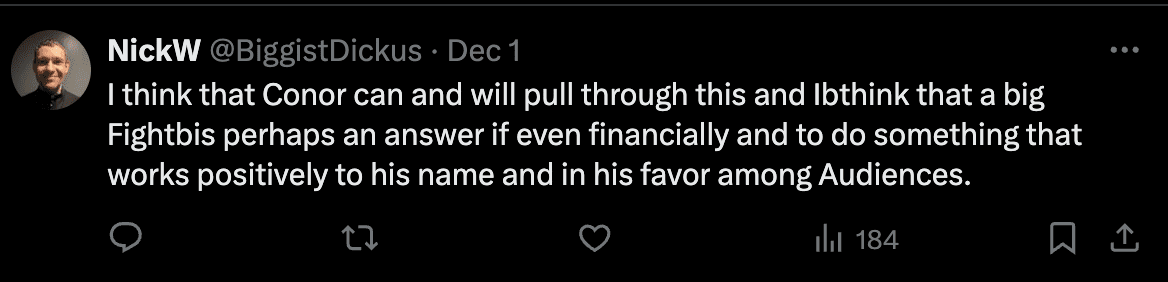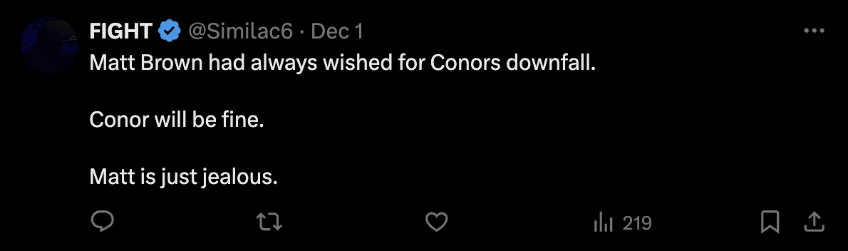 "If he comes out, and says ‘I learned a lot from this situation and I’m not putting myself in these types of situations anymore, I’m focusing on my family … all that kind of stuff, says all the good things — people like to see a redemption story. People want people to be good people. We want Conor to do that, but he has to be the one to do it, though. It’s not going to happen by itself," Brown said