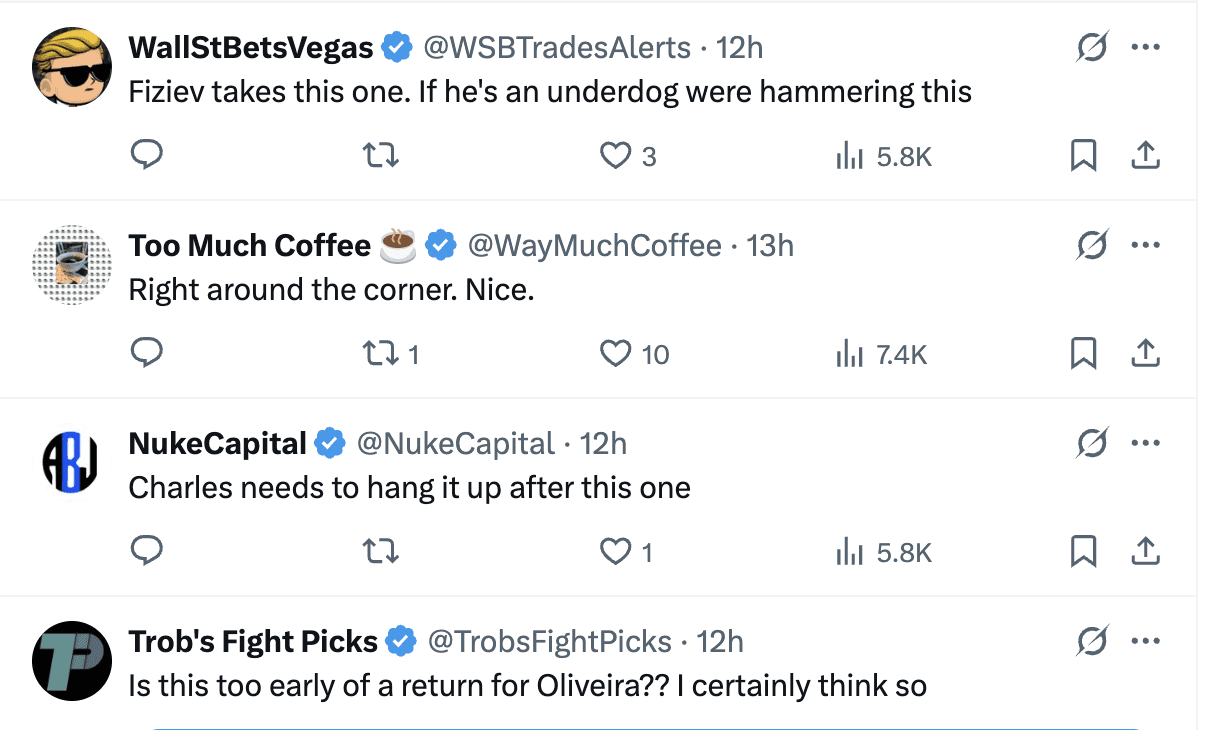 Fighting Fiziev is a difficult match-up for Oliveira, especially given the context of his recent career. Fiziev is one of the most dangerous strikers in the lightweight division. Fiziev is known for his explosive power, fast combinations, and "Matrix-like" head-kick evasions. Oliveira’s defense has been a consistent vulnerability throughout his career, leaving him susceptible to getting dropped or hurt badly. This was evident in his recent loss to Topuria.