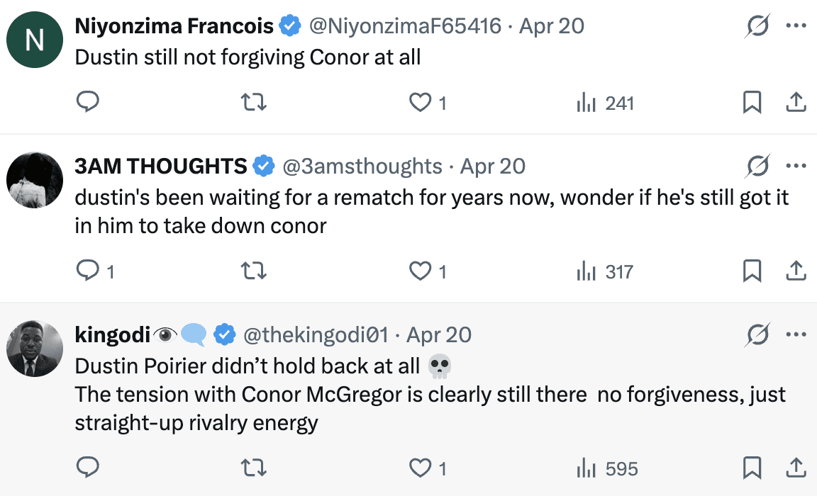 | Verdict | Sees a fellow fighter’s struggles | Sees a “dirtbag” (a term Dustin has used previously). |