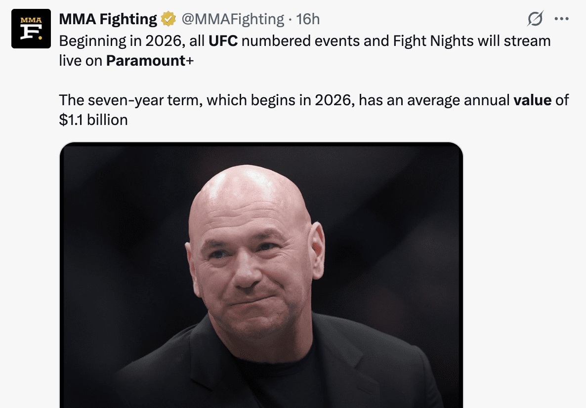 For the UFC, while they are getting a new broadcast partner, it is unclear if this deal meets their reported asking price of over $1 billion per year. Their previous deal with ESPN was valued at $450 million annually, and while a new, more lucrative deal is expected, a gap between their valuation and the final number could be seen as a missed opportunity to maximize revenue.