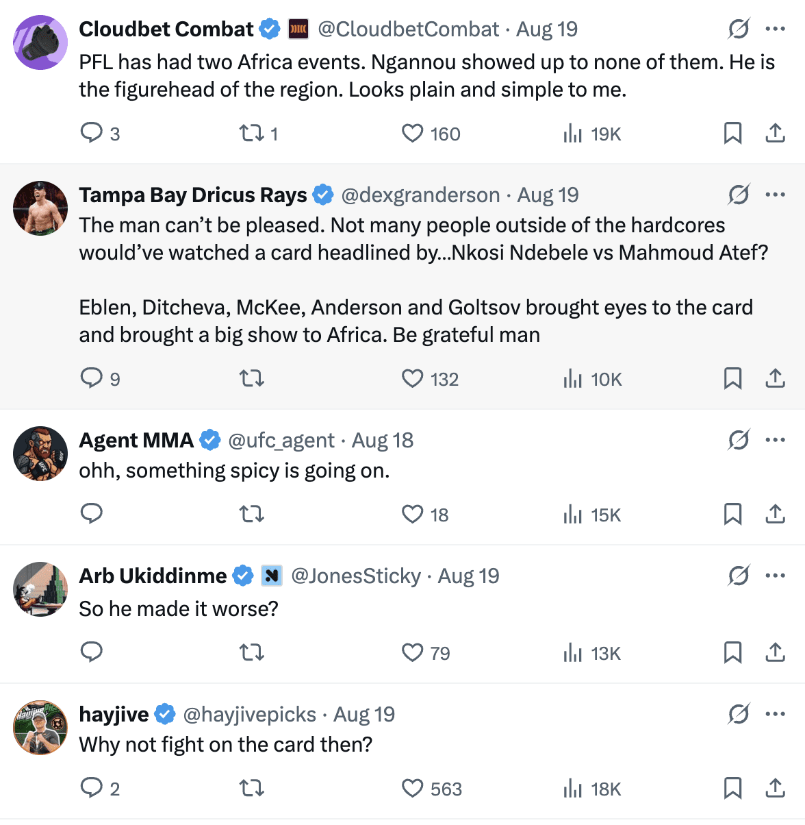 Ngannou’s next PFL fight is not closer to being made. The most competitive fights are in the UFC, however, Dana White has said he would never work with Ngannou again following his departure. Jon Jones and Tom Aspinall are the two biggest bouts out there, but Ngannou is not in the picture to get those bouts. Fans had plenty to say.