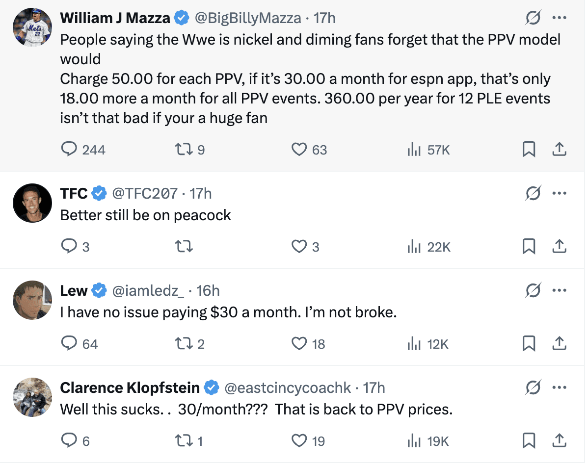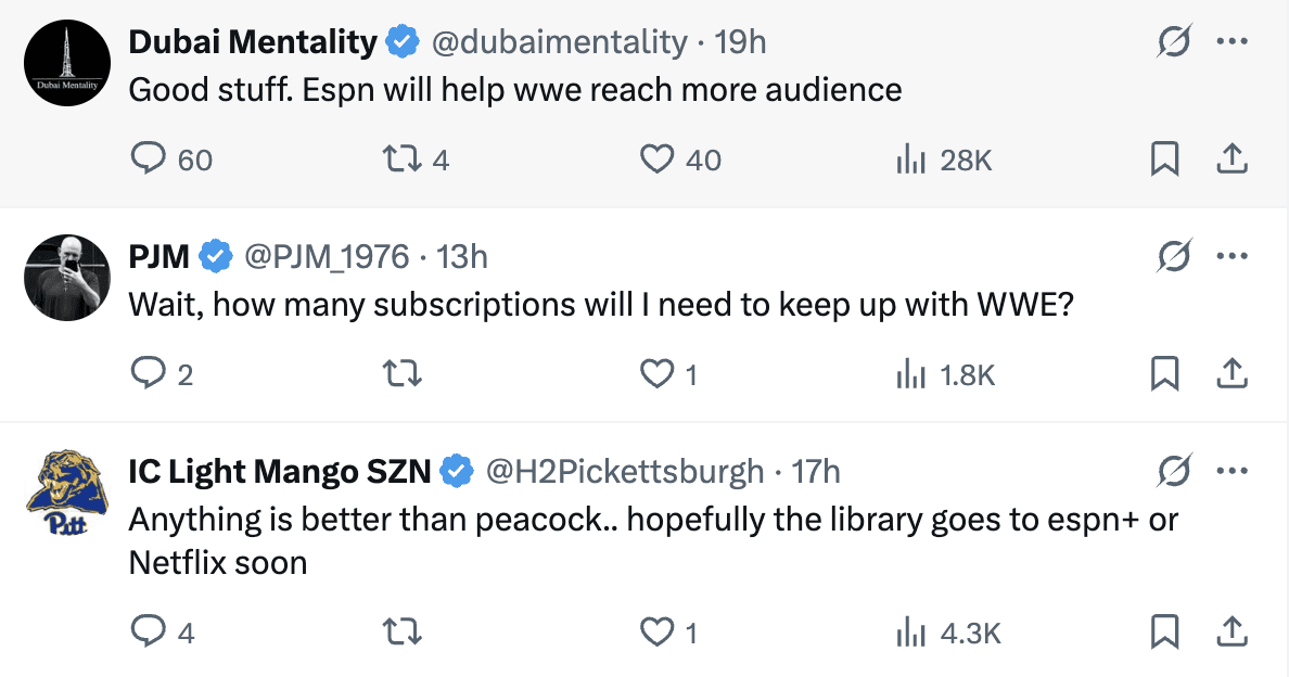 With WWE content on the huge ESPN platform, more casual sports fans will be exposed to the sport. This increased visibility could lead to a bigger audience for WWE and, in turn, bigger events. While the new service has a higher price point than Peacock, reports suggest that existing cable subscribers with ESPN may be able to access the new content at no extra cost.