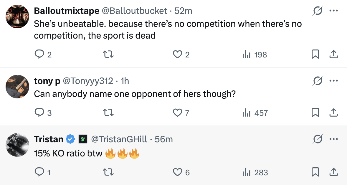 “But I showcased my skills, body shots. She just wouldn’t go. I thought she was getting ready to go in Round 6 or 7. I wasn’t punching enough maybe in 8 or 9. “I can beat these girls tremendously. I try hard to get the knockout. I love y’all. Love to share the ring with Shadasia [Green]. She’s at 168 [pounds], I’d go down and fight against her. Franchon still has belts at 168. So you might see Shields vs. Crews-Dezurn 3,” Shields said