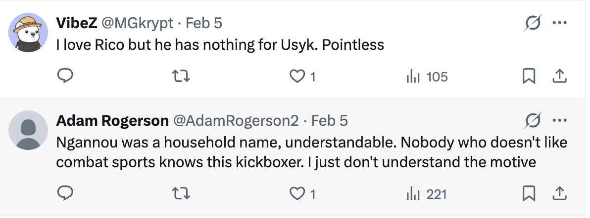 The 39-year-old Usyk, with only a few fights left, could arguably face boxers such as Joseph Parker or Agit Kabayel. Defeating Verhoeven adds a “cross-disciplinary” shine to his resume. Based on previous fights, it is not something out of the ordinary. Fans have already seen Tyson Fury vs. Francis Ngannou. While Fury won, he did struggle in the fight, getting knocked down. If Usyk struggles with Verhoeven or gets caught by a “lucky” shot, it could spell danger.