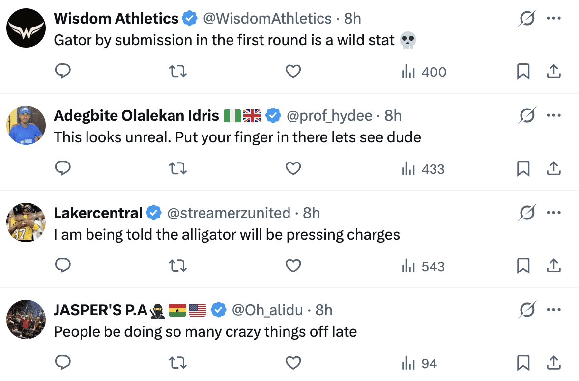 Despite getting the "all clear," the Armenian-Russian fighter kept his arms well away from the animal’s jaws. Instead, he performed a theatrical "shadow-choke" for the cameras. Tsarukyan then treated viewers to a brief "rodeo" impression, pretending to buck on the crocodile’s back while N3on and the park staff looked on.